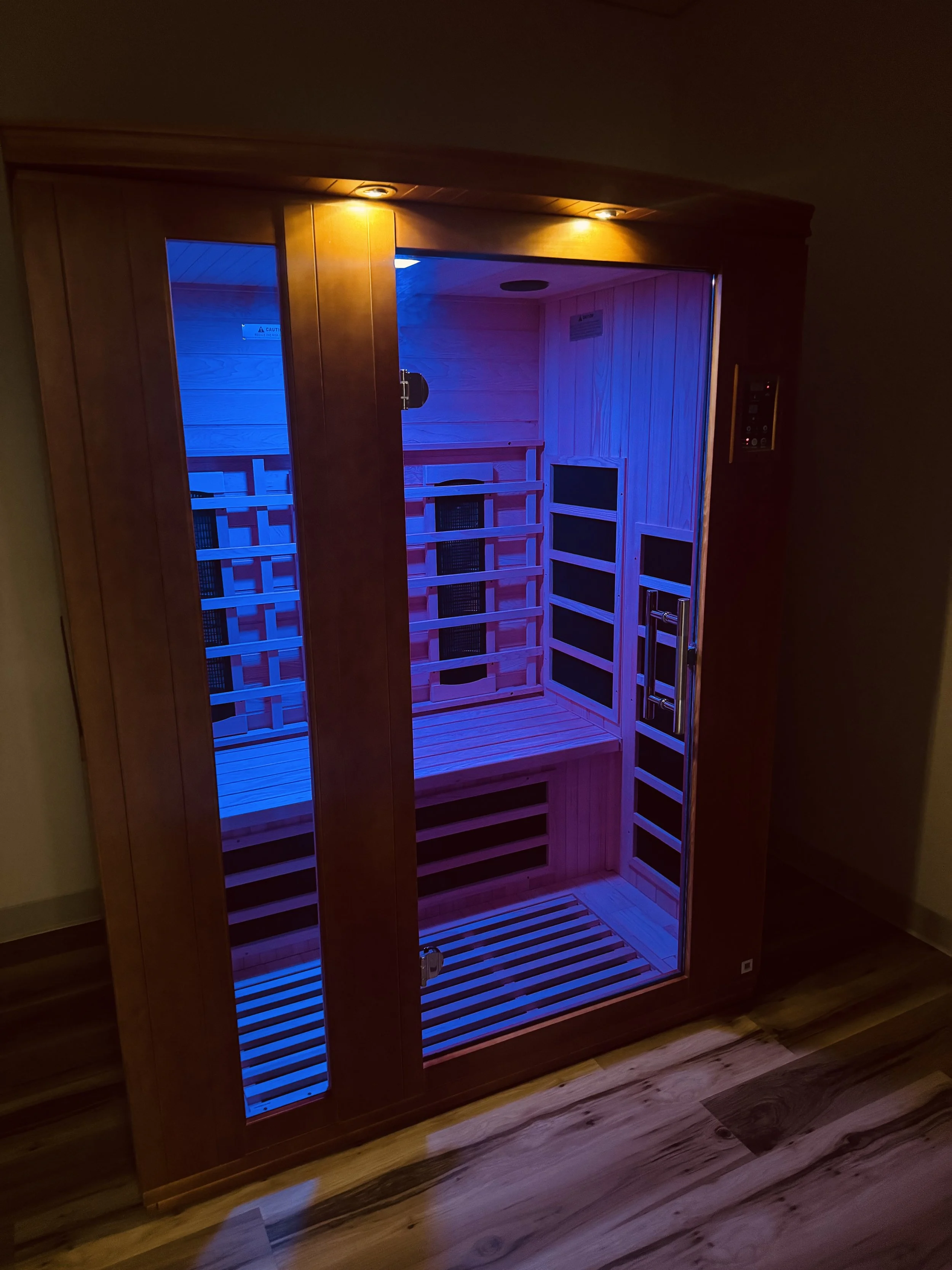 That said, safety comes from how the sauna is used. Infrared sauna sessions are meant to support relaxation and restoration—not endurance or pushing past limits. Feeling calm warmth is ideal; dizziness, nausea, or discomfort are signs to stop and cool down. We limit our Sauna sessions to 30 minutes to ensure safe use as well as require you to bring a water vessel to ensure proper hydration.